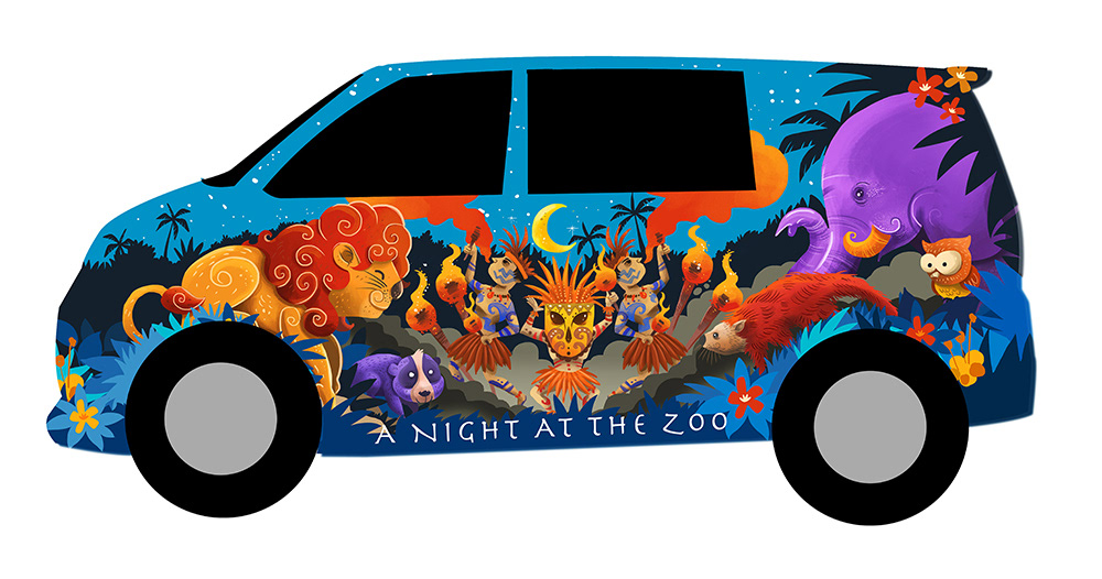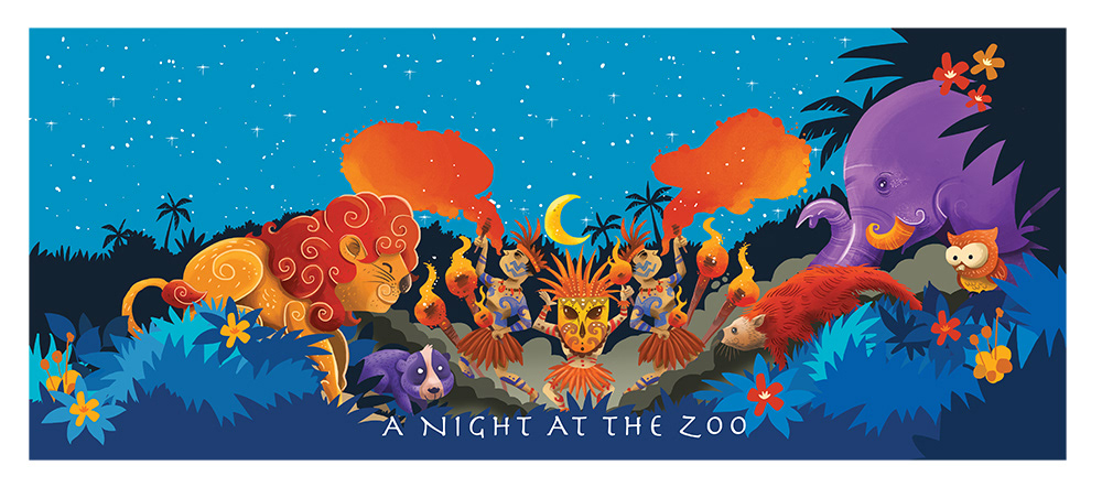 Artwork for Bali zoo fan. The artwork show the fun atmosphere at night at the zoo